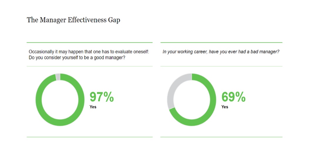 We twijfelen niet aan de goede intenties van de meeste leidinggevenden, maar onderzoek toont aan dat managers zelf vaak een verkeerd beeld hebben over hoe goed ze presteren. Het aantal werknemers dat aangeeft ‘een slechte manager’ te hebben valt ondertussen – ook in héél wat Belgische onderzoeken – niet meer onder de mat te schuiven.